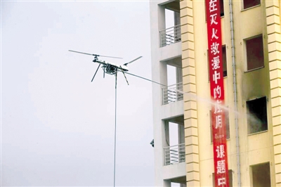 高層建筑滅火救援困難是公認(rèn)的世界性難題。“旋翼無(wú)人機(jī)在滅火搶險(xiǎn)救援領(lǐng)域中的應(yīng)用”項(xiàng)目,運(yùn)用專門研發(fā)的大載荷工業(yè)級(jí)無(wú)人機(jī)和現(xiàn)代滅火技術(shù),搭載超細(xì)干粉和水基高效滅火藥劑,在撲救百米內(nèi)高層建筑室內(nèi)空間火災(zāi)方面表現(xiàn)出靈敏的控制響應(yīng)、穩(wěn)定的飛行表現(xiàn)和快速有效的滅火效果。
